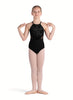 The Bloch Rosie Halter Leotard CL5665 from the 2024 Holiday Collection features a luxurious velvet bodice with a stylish halter design. The mesh detailed back adds a modern touch, making this leotard a chic addition to any dancer's wardrobe.
