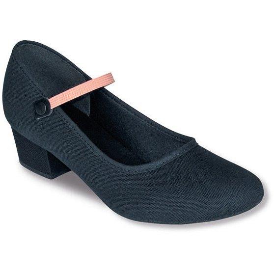 Canvas Character Shoe with Cuban Heel RO42 from So Danca is a superior shoe. This character shoe is a canvas style with a cushioned lining that will keep your feet comfortable for the hours of practice you will wear them for. The snap-on strap are easy to put on and the black and pink elastic straps come with the shoe. With the 1.25" Cuban Heel, you will have a bit of height and great stability.