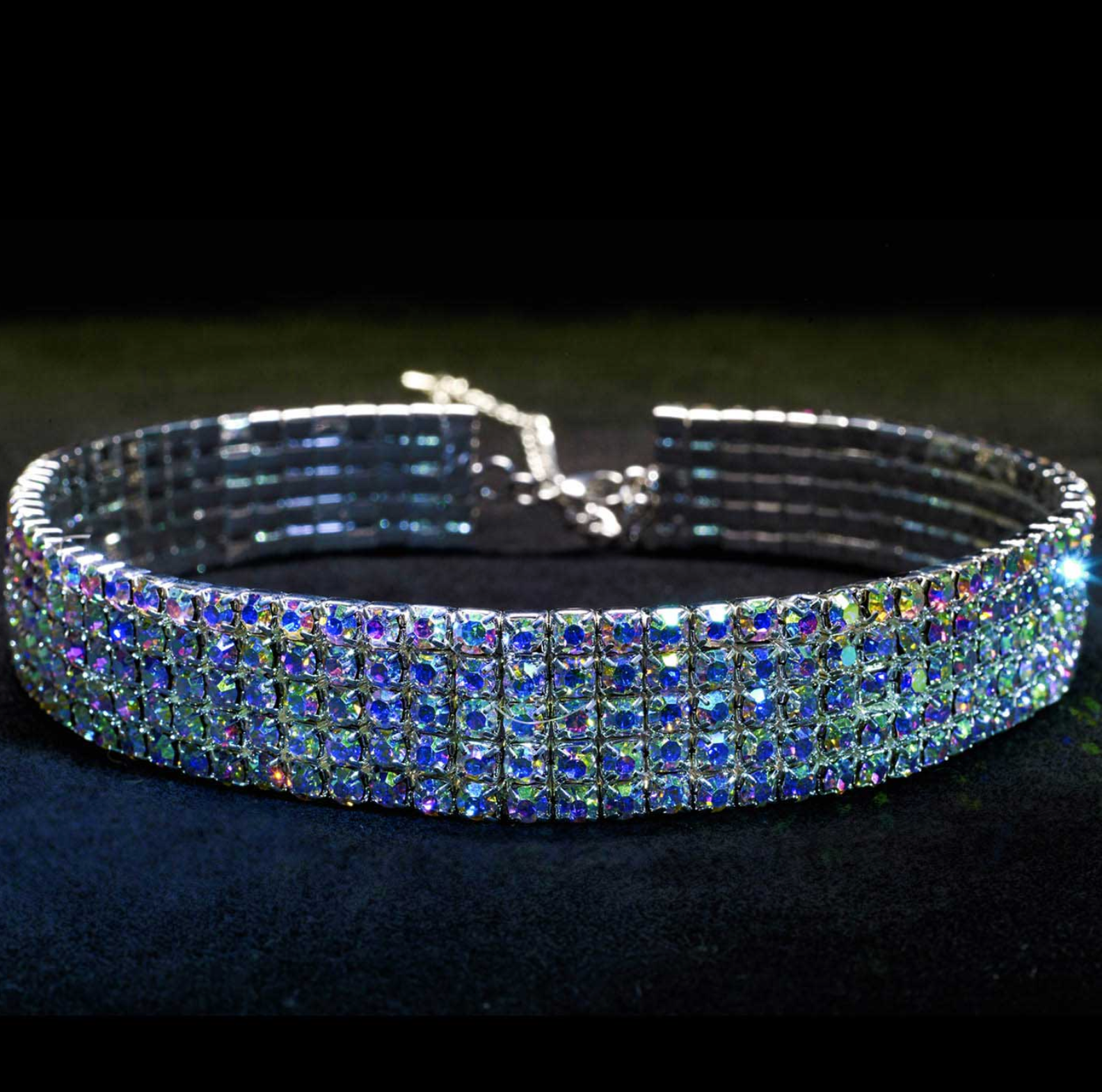 5-Row Crystal Stretch Choker SS0151 from Kissed by Glitter is a sparkly accessory. This bracelet will add a dazzling addition to your costume.