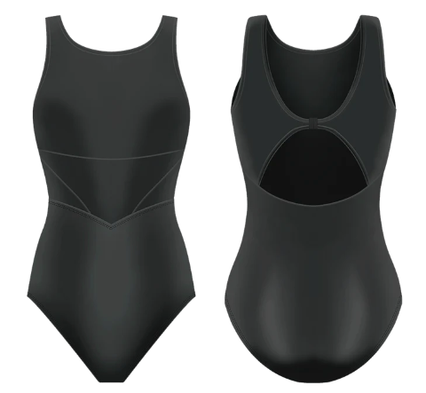 • Mid-section V drawing the line of the leotard in, focusing on the narrowest part of the body, resembling the structure of a corset