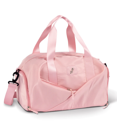 Style B24512 from Danshuz is another amazing utility dancer duffle has it all. Roomy fully lined inside compartment in addition to a separate side entry pocket for shoes or wet items. Two additional front exterior pockets make organizing your dance gear a snap! Soft double carrying handles along with an adjustable shoulder strap and the word Dance embroidered on the front strap completes this bag. Wipes clean and folds flat.